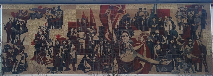 On Wednesday, the weather improved. At least it was not freezing anymore. We had all the talks in the morning, so we could do some tourism after lunch. We had amazing currywurst in front of the Culture Palace. We were eating while facing the large mural of the workers’ movement in Germany.